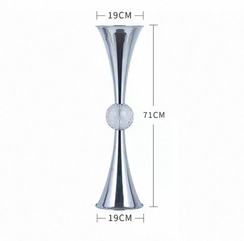 27” GOLD reversible metal vase stand with crystal ball trumpet*