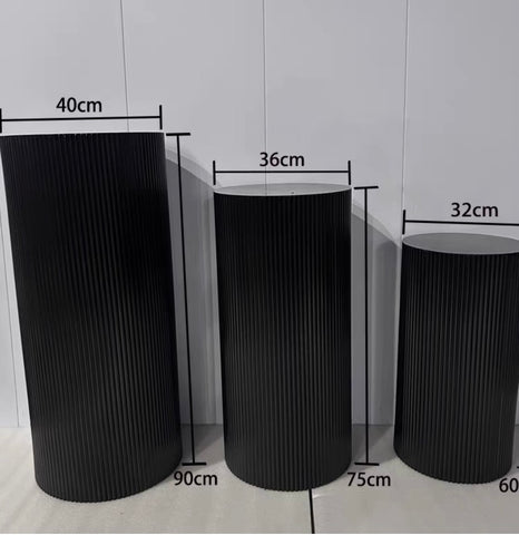 White set of 3 metal stand Pillar plinth round with ripple striped